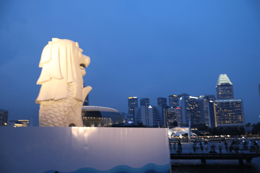 第一次看Merlion,比我想象中小很多啊! 而且又在維修,沒有噴水。
